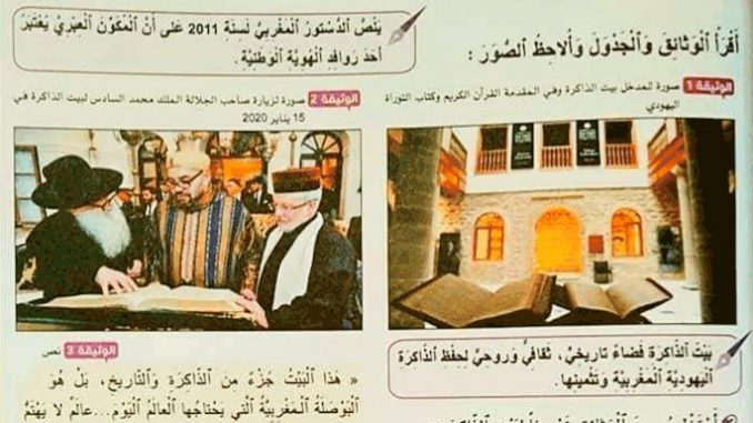 The curriculum also contains a lesson on the Jewish Museum of Casablanca, which opened in 1997 and is under the supervision of Zhor Rehihil, a Moroccan of Muslim faith, in addition to excerpts on Jewish traditions and customs, poetry and religious rituals.